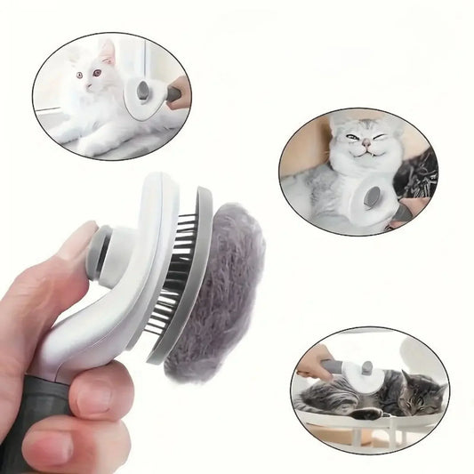 מברשת מסרק לחתולים וכלבים עם לחצן ניקוי עצמי אפור