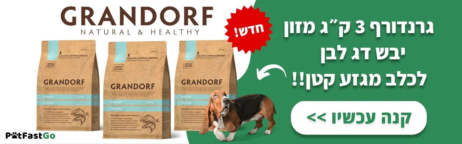 GRANDORF White Fish גרנדורף דגים והודו לכלבים בוגרים מבצע 2 שקים + מתנה 10 ק״ג