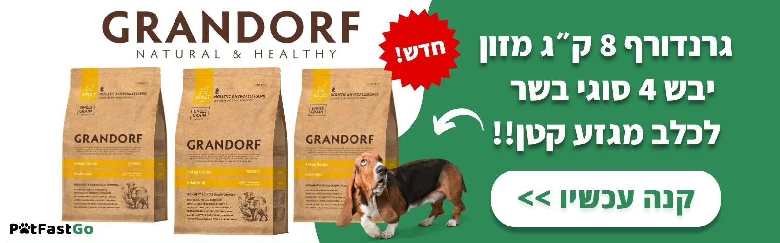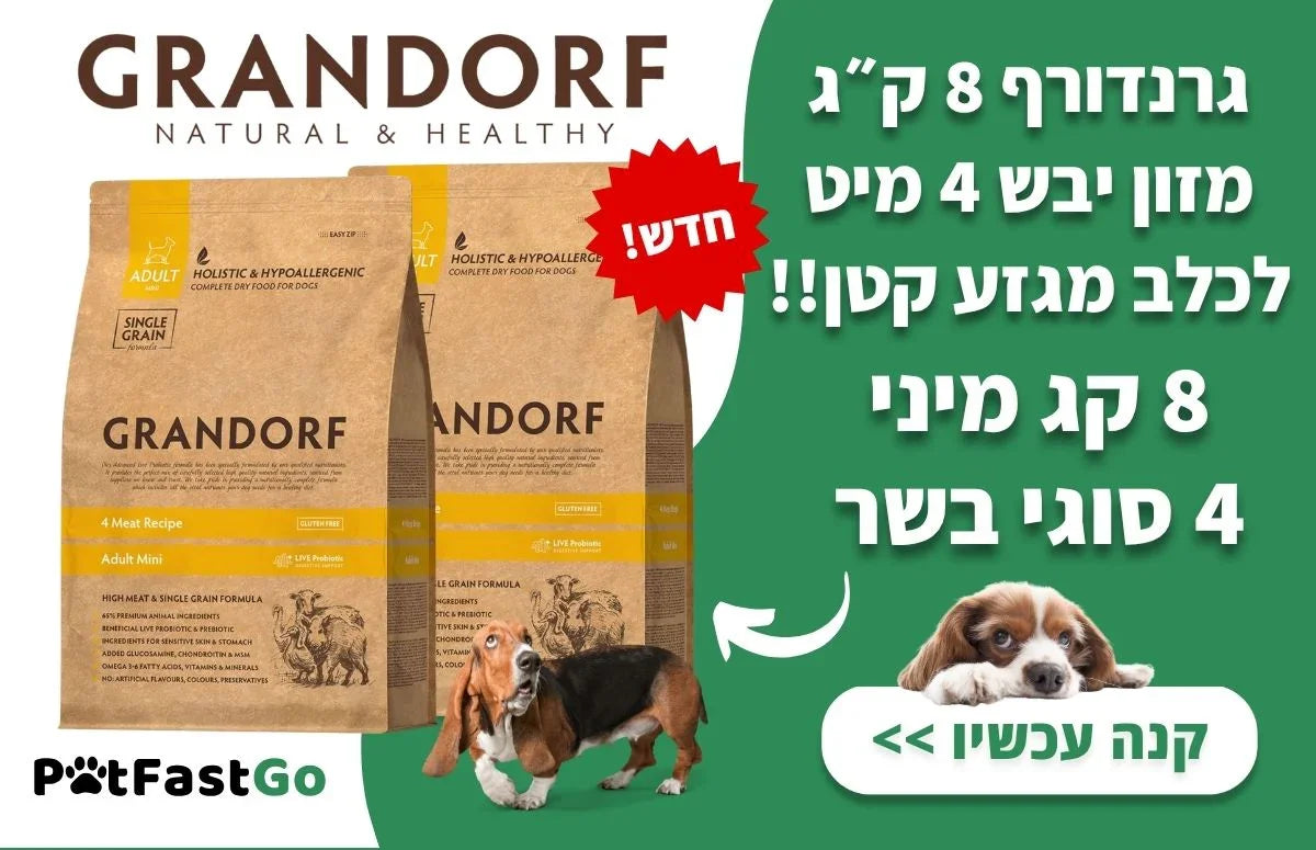GRANDORF 4 Meat Mini גרנדורף מיני 4 סוגי בשר לכלב בוגר גזע קטן 3 ק״ג מבצע 2 שקים + מתנה