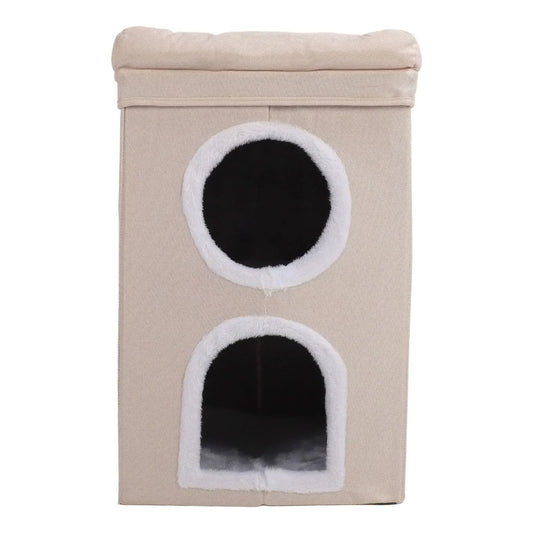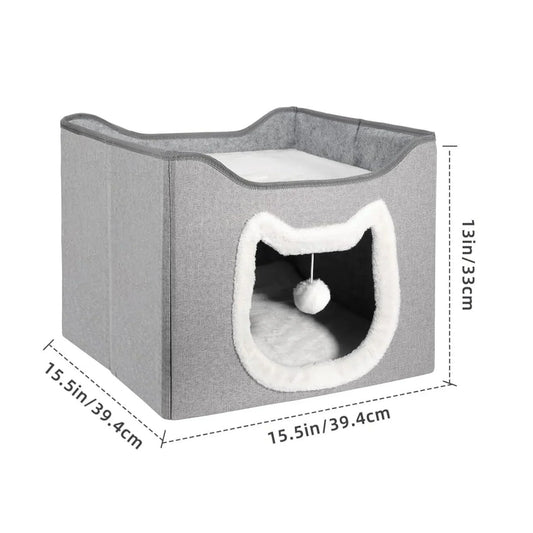 בית חתולים מרופד מתקפל עם כדור משחק וקרש גירוד