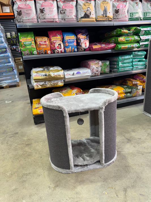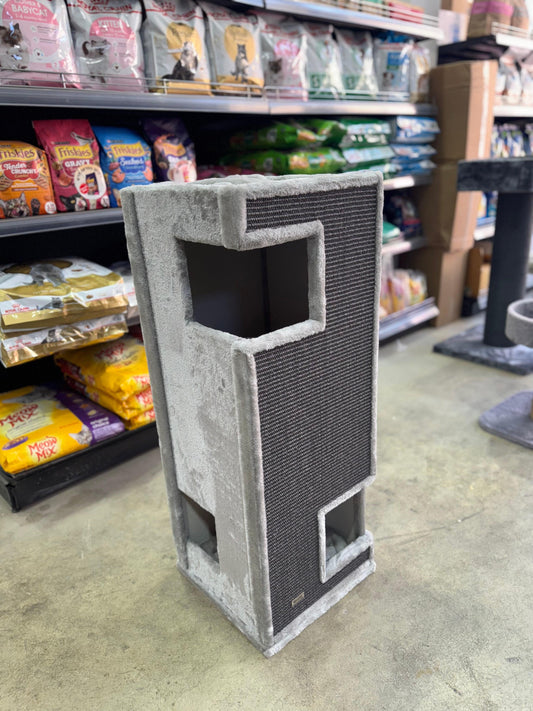 בית חתולים מרופד שתי קומות עם שריטה בצבע בז