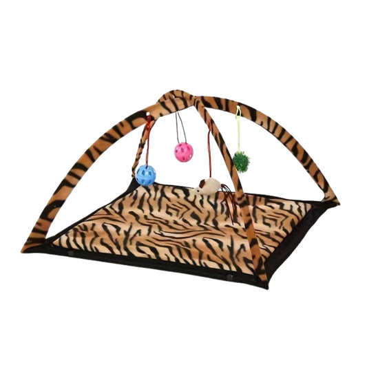 מיטה אינטראקטיבית לחתולים עם צעצועים צבע חום