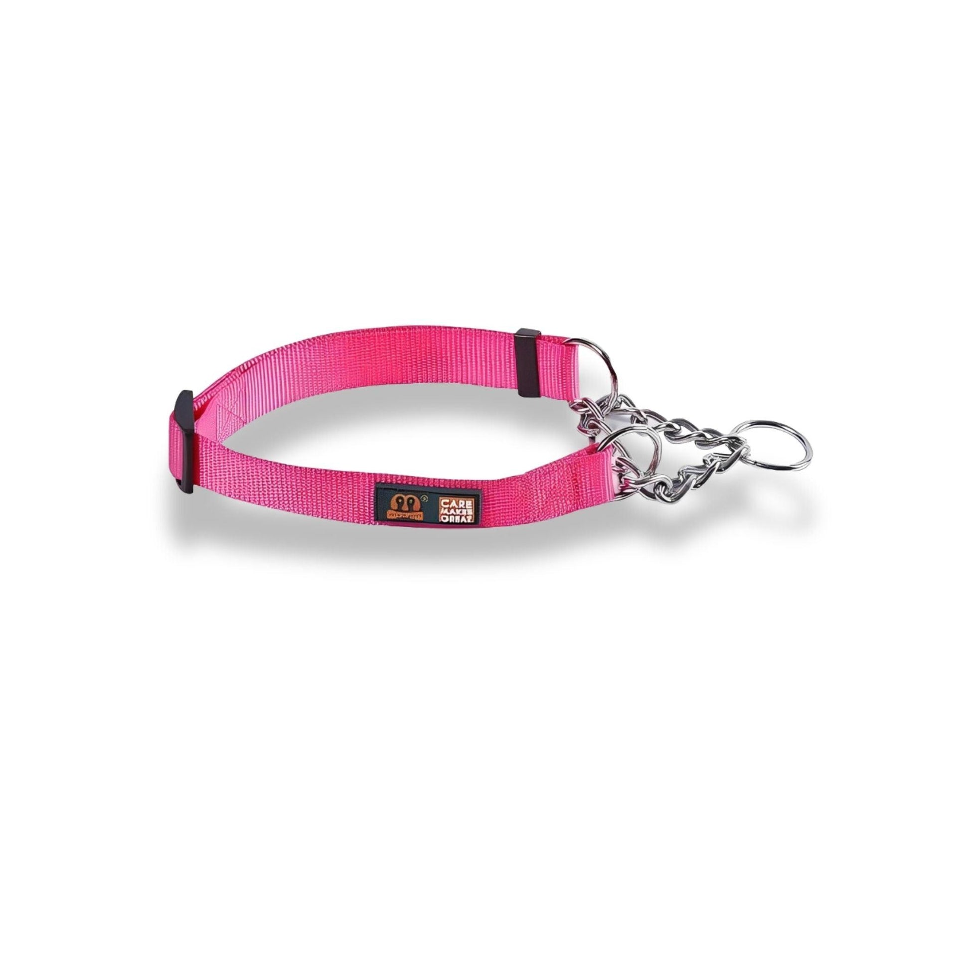 A half-choke collar is designed to help train the dog, A collar designed to help train the dog, the collar is based on the sound of the chain rustling to give commands. The collar is ideally designed so that it is not too tight around the neck. Available in four different colors: black, red, blue and pink