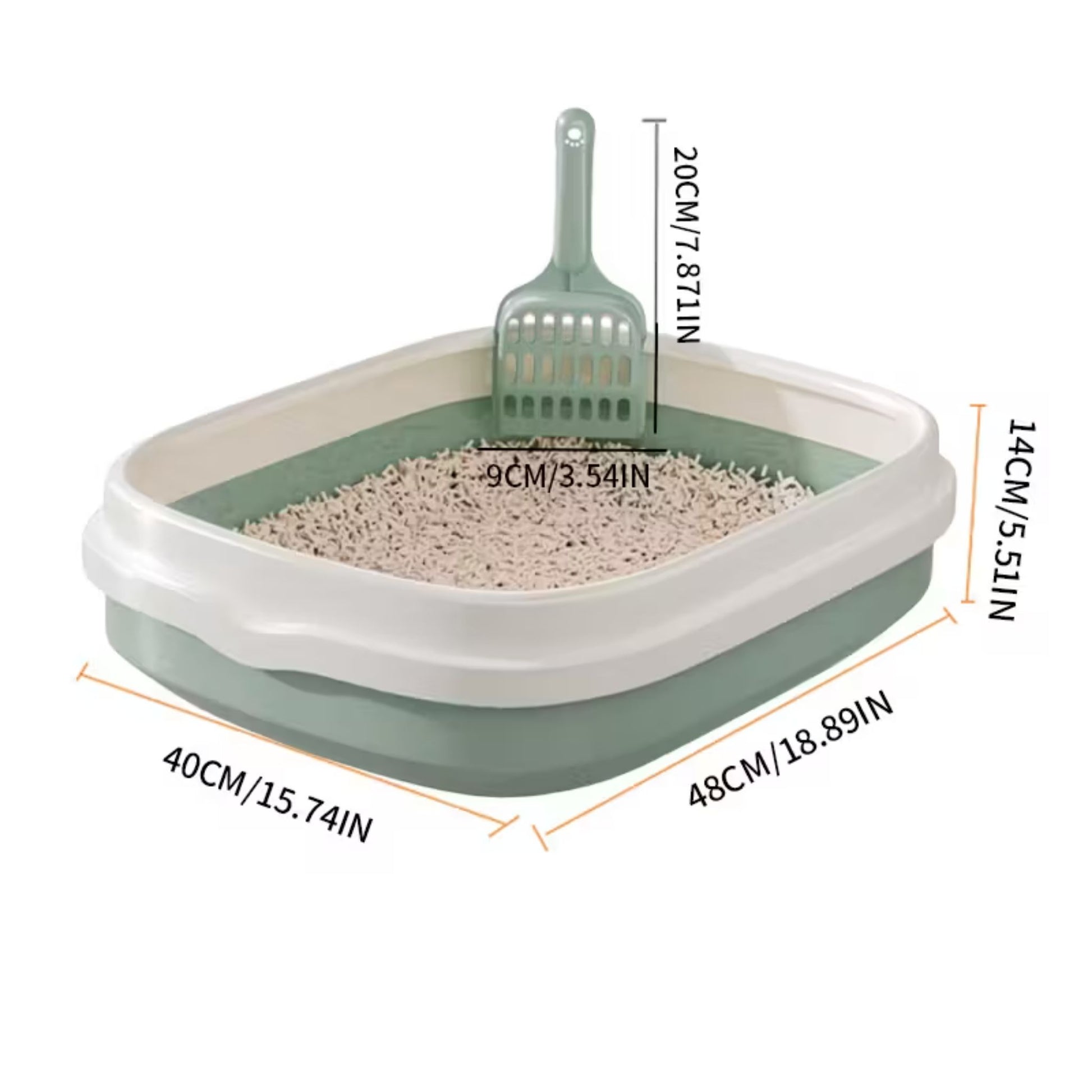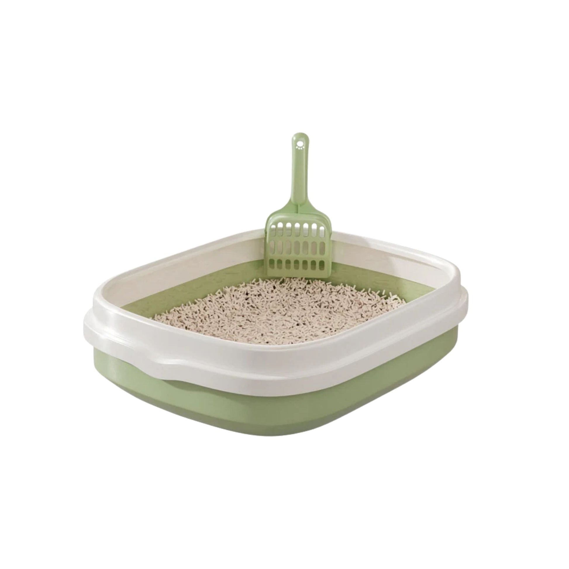 ארגז חול שירותים פתוח לחתולים עם כף ניקוי צבע ירוק גדול