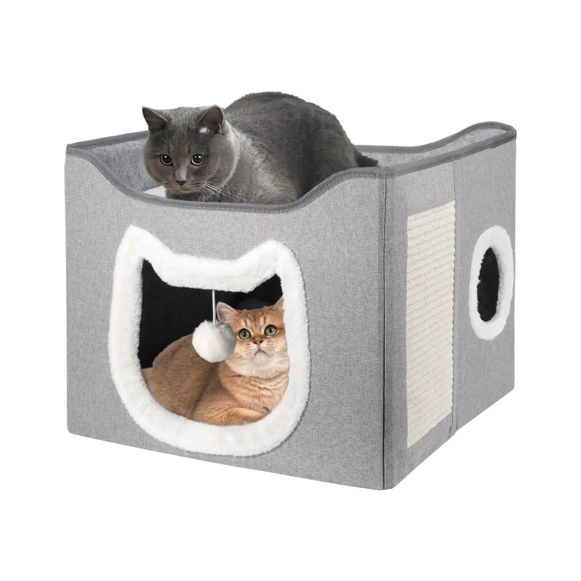 בית חתולים מרופד מתקפל עם כדור משחק וקרש גירוד