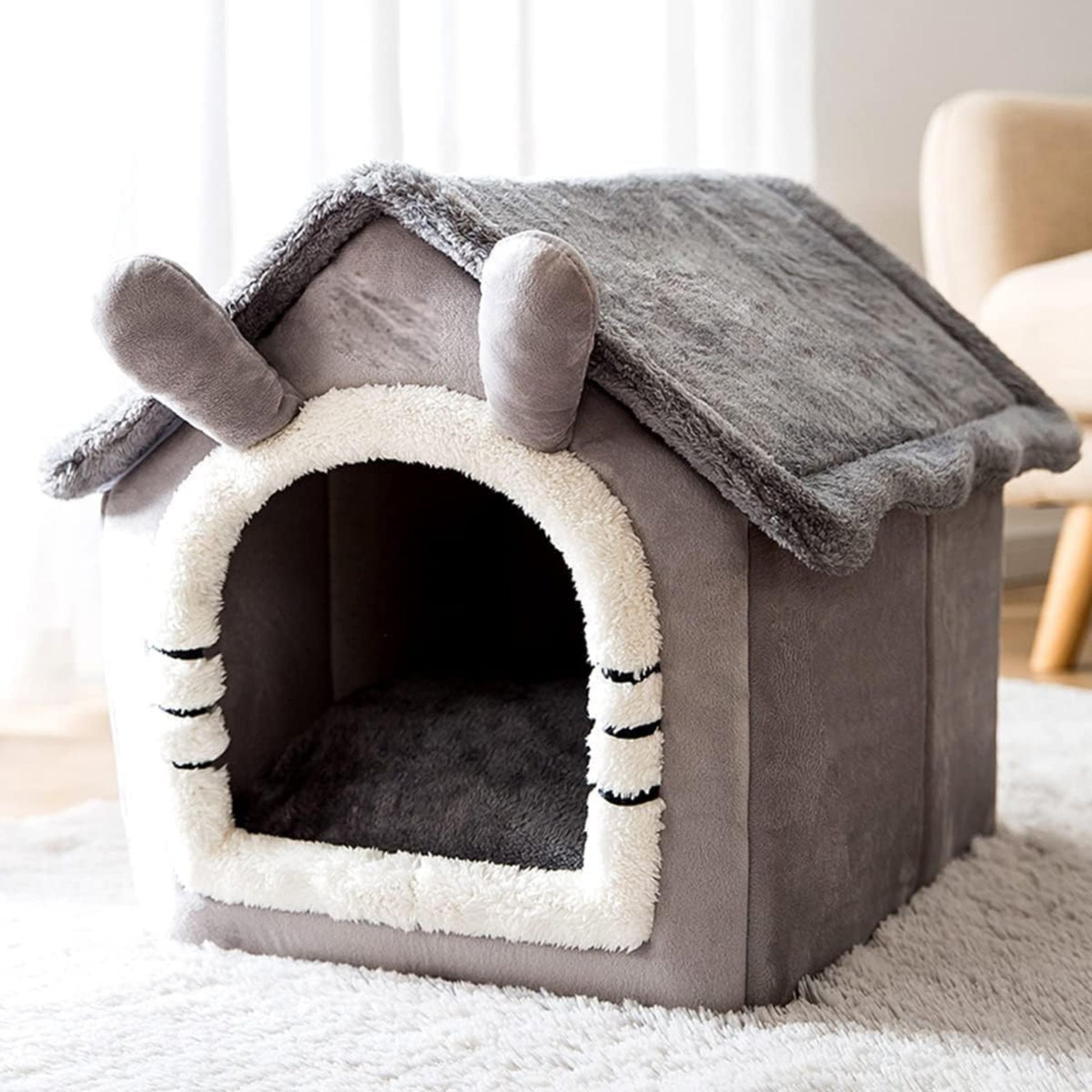 בית מיטה לחתולים ולכלבים קטנים בעיצוב סגור בצורת בית, שנותן לחיית המחמד פינה חמימה, שקטה ומוגנת לשינה ומנוחה. המבנה הסגור עוזר ליצור תחושת ביטחון ומפחית רעשים ורוחות, ולכן מתאים במיוחד לחתולים ולכלבי קטנים שאוהבים להתכרבל במקום פרטי ונעים.