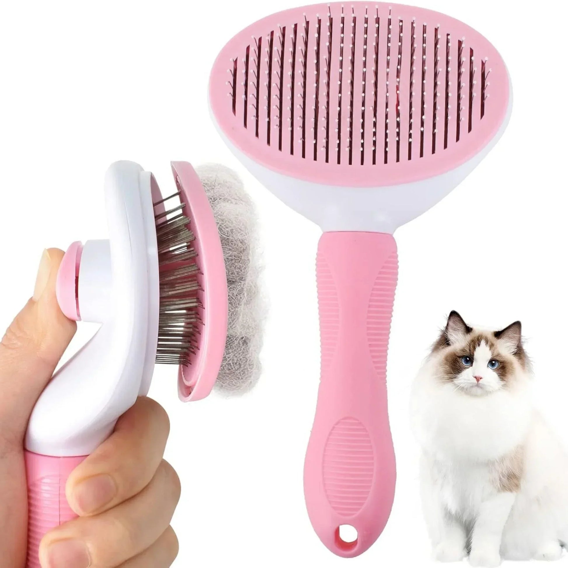 מברשת מסרק לחתולים וכלבים עם לחצן ניקוי עצמי ורוד