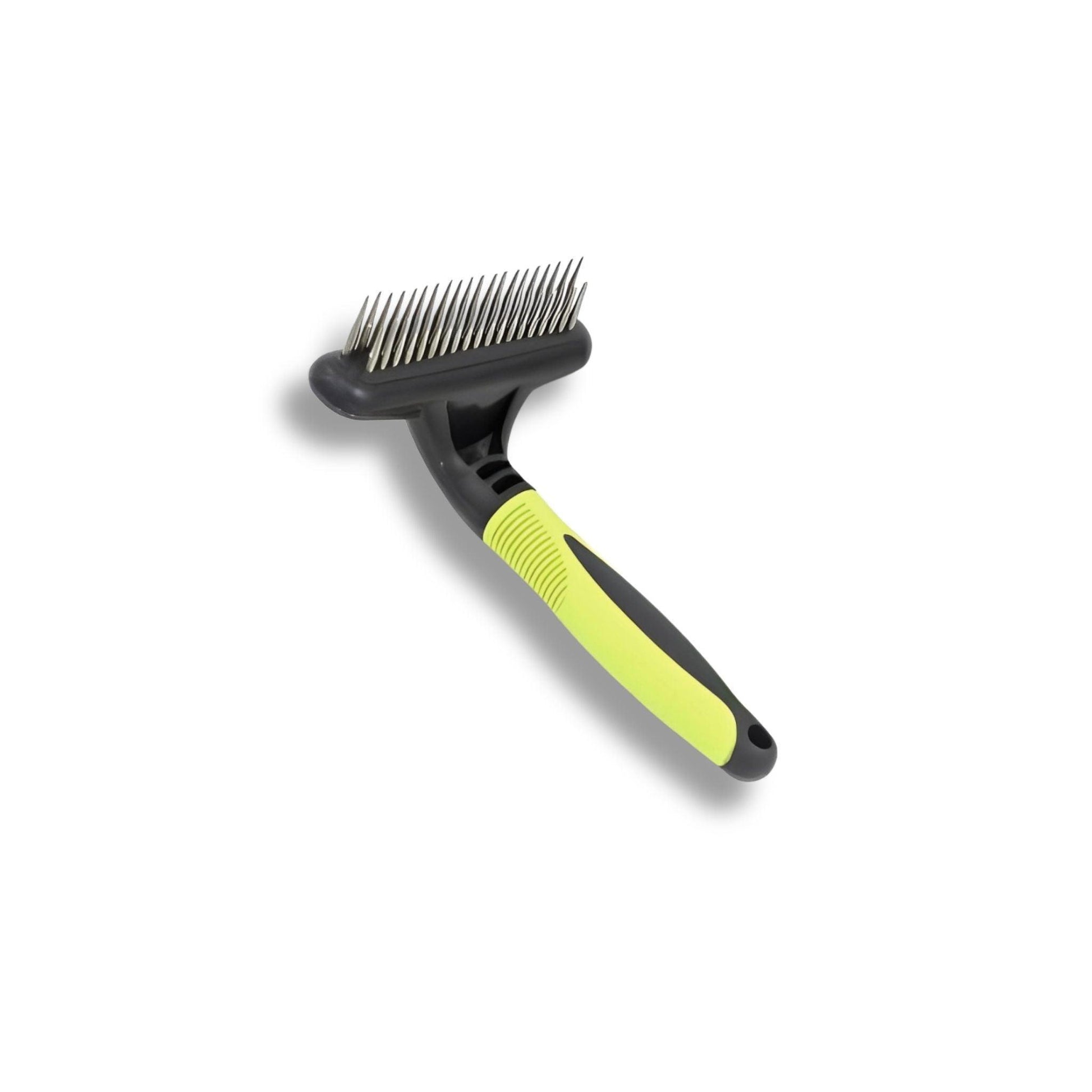 מסרק מגרפה איכותית ונוח לסירוק הכלב עם שני סוגי מברשות. השילוב בין הסוגים מאפשר דילול וטיפוח יעיל ביותר, המסרק מסיר פרווה שנשרה/עומדת לנשור ועור מת