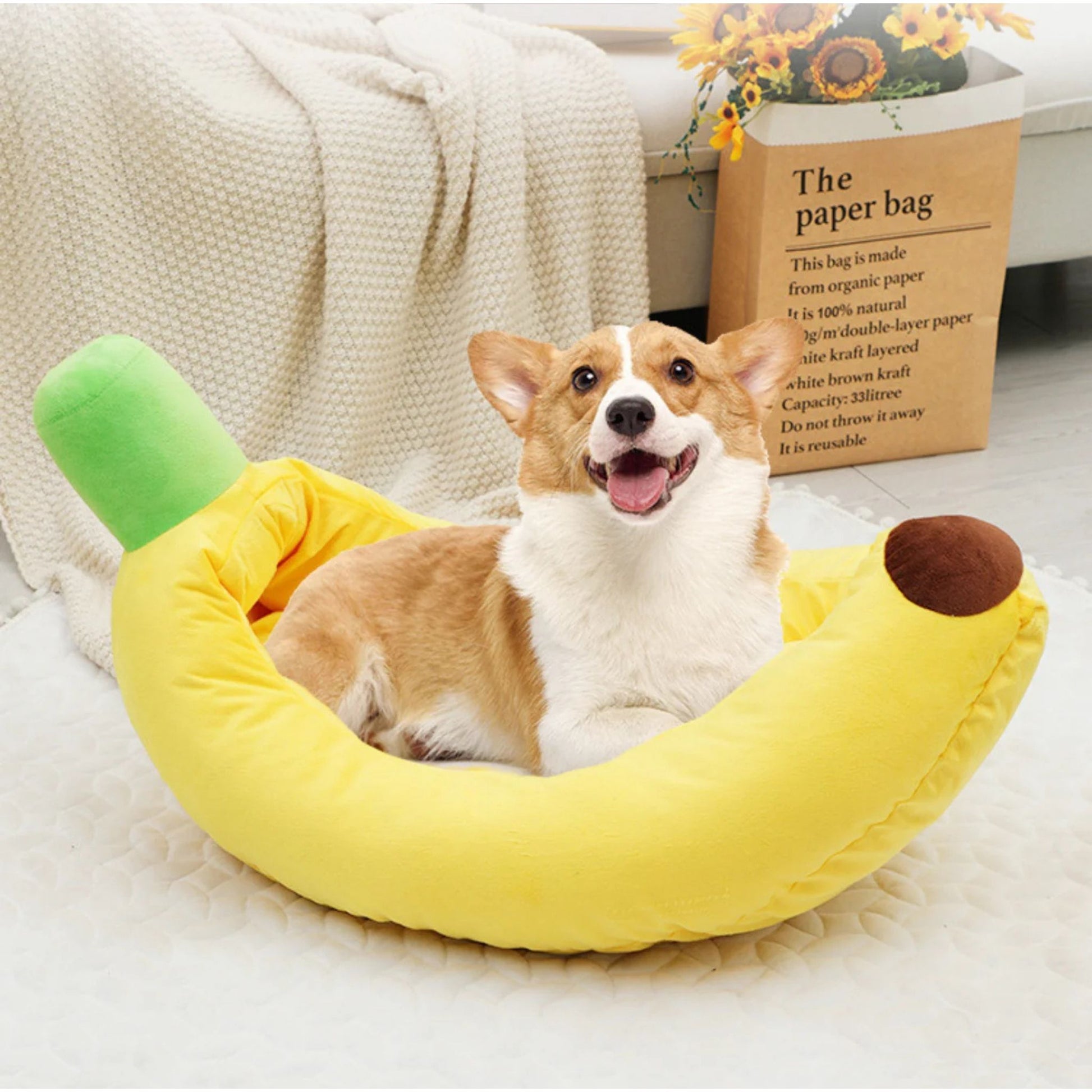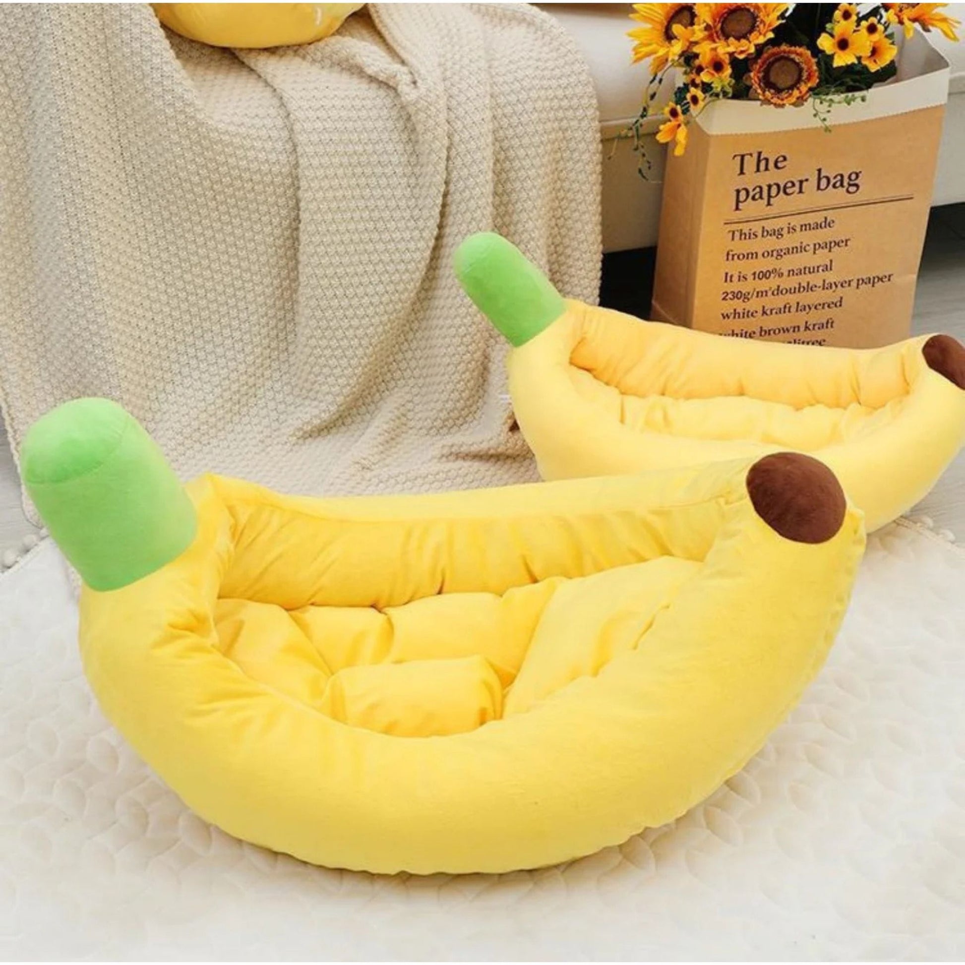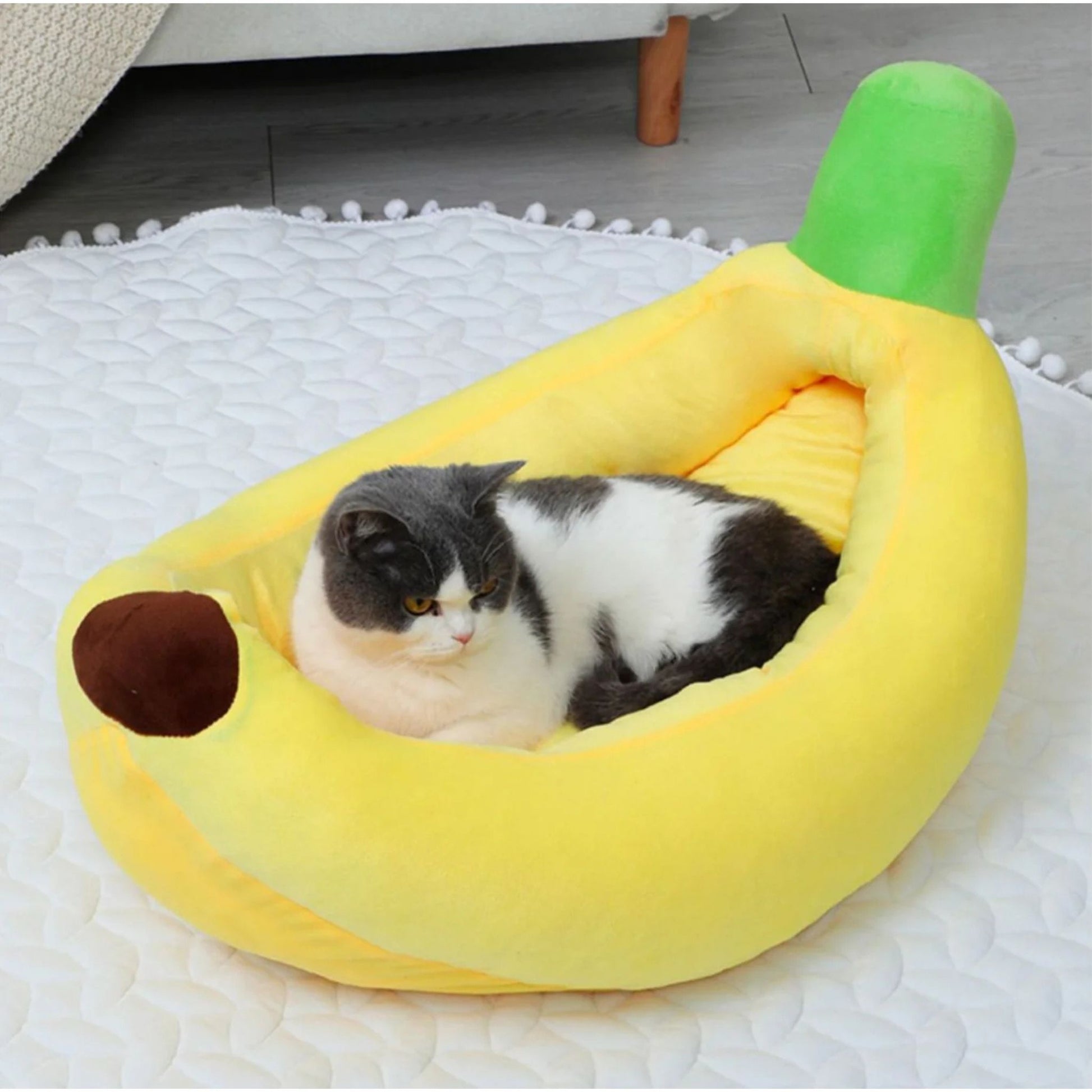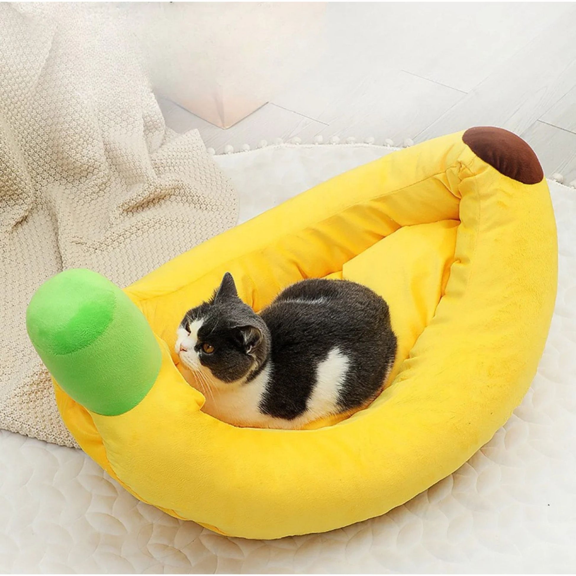 מיטת בננה צהובה לכלבים וחתולים בעיצוב ייחודי ונוח במיוחד, מעניקה תחושת עטיפה וביטחון בזמן מנוחה ושינה. המיטה עשויה בד רך ונעים למגע, עם דפנות גבוהות לתמיכה מושלמת בגוף. המבנה המתפרק מאפשר פירוק קל וניקוי נוח, כולל אפשרות לכביסה לשמירה על היגיינה ורעננות לאורך זמן. מתאימה לכלבים קטנים ובינוניים ולחתולים, מושלמת לפינת רביצה בבית, בחדר או בסלון.