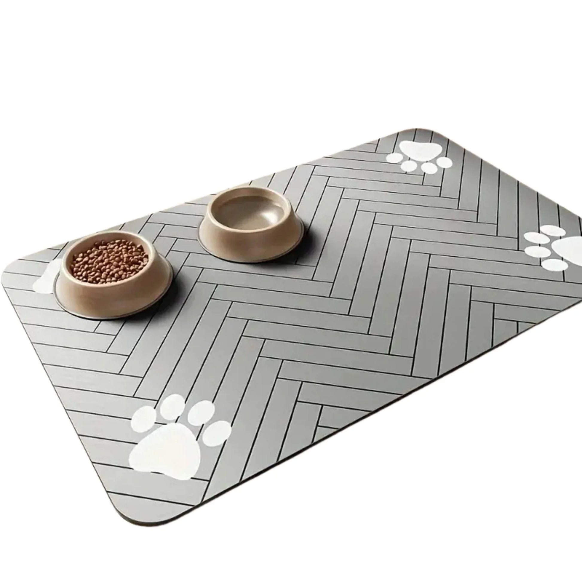 משטח אוכל ומים איכותי לכלבים וחתולים צבע אפור, עשוי בוץ דיאטומי סופג במיוחד, עמיד למים וקל לניקוי. בזכות העיצוב הייחודי והמרקם הסופג, הוא מונע נזילות, שומר על הרצפה יבשה ומעניק מראה מסודר לפינת האוכל של חיית המחמד שלכם.