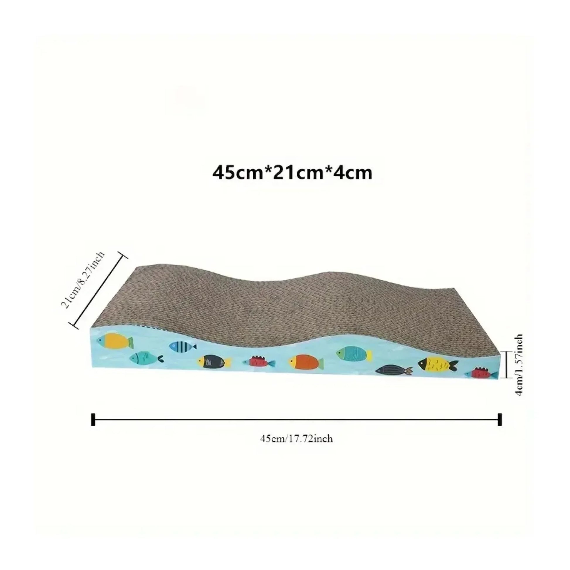 משטח גירוד חתולים עמיד במיוחד בעיצוב גלי עם קווים רכים לנוחות שכיבה וגירוד. עשוי מקרטון גלי איכותי וצפוף שמתאים במיוחד לטיפוח הציפורניים ושחרור אנרגיה, מבלי לגרום לכלוך מיותר ברחבי הבית. העיצוב כולל הדפס דגים צבעוני לאורך הדפנות, מה שהופך אותו לא רק שימושי אלא גם פריט עיצוב חמוד לבית. מאפשר לחתול גם לגרד וגם להתכרבל – מתאים למשחק, מנוחה, ומתנה נהדרת לכל חתול. משטח בטוח, נעים, וידידותי לסביבה שאינו מתפורר בקלות.