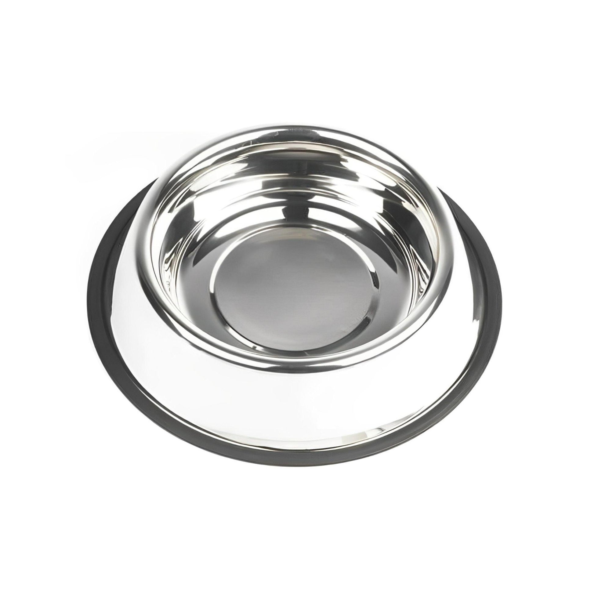 קערת אוכל ומים מנירוסטה עם בסיס מונע החלקה לכלבים וחתולים מידה בינונית
