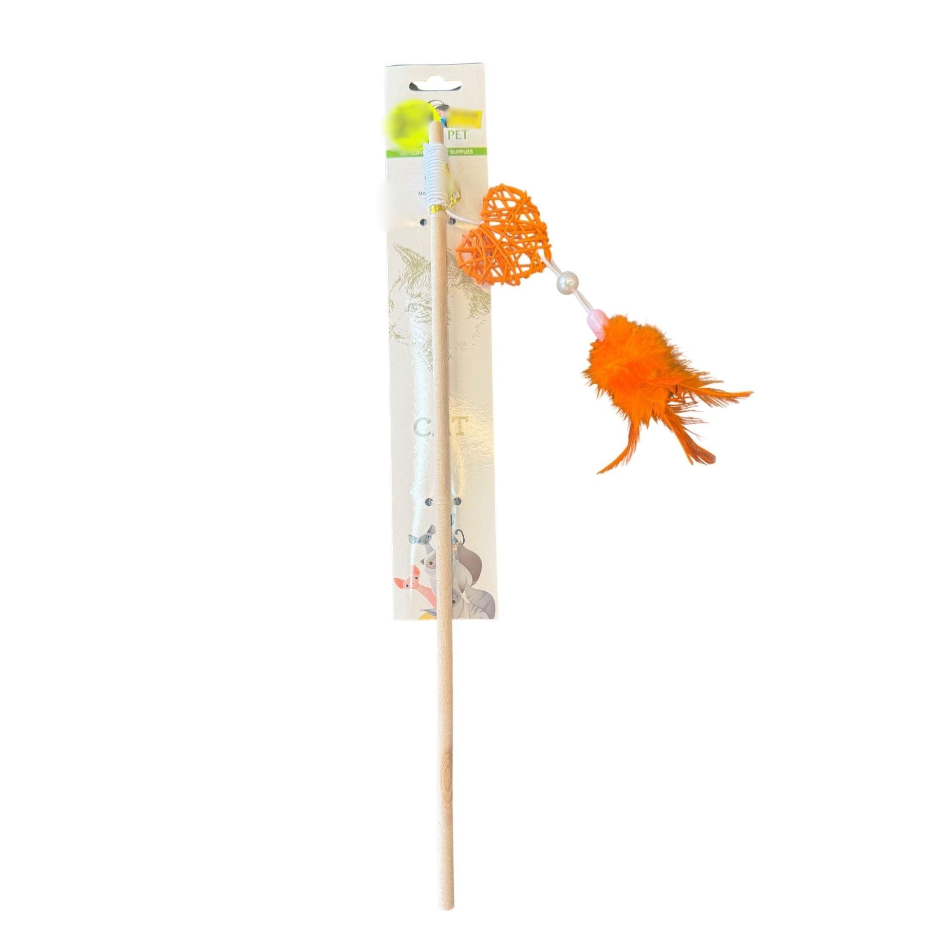 צעצוע חכה לחתול עם לב כתום ונוצה