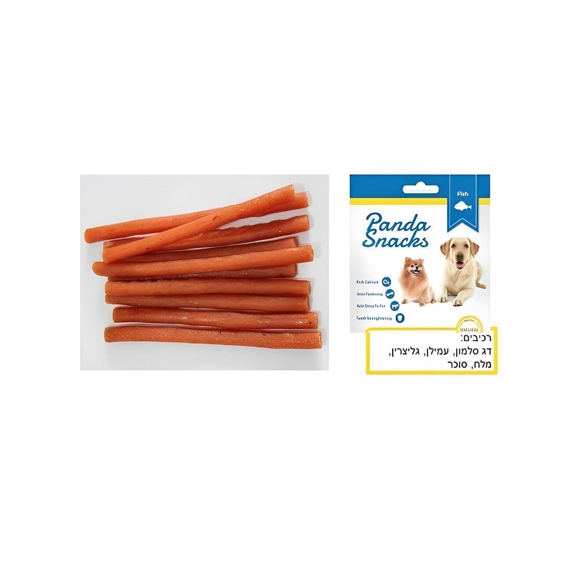 עשוי מ-25% חלבון. חטיפי פנדה רכים, מזינים ומפנקים. לפינוק הכלב ברמה יומיומית. מקלות סלמון עשויים מבשר סלמון משובח, בשר מזין ומתעכל בקלות. חטיף עשיר בסידן, מועיל לשיני ומפרקי חיית מחמד. מוסיף ברק וניצוץ לפרווה