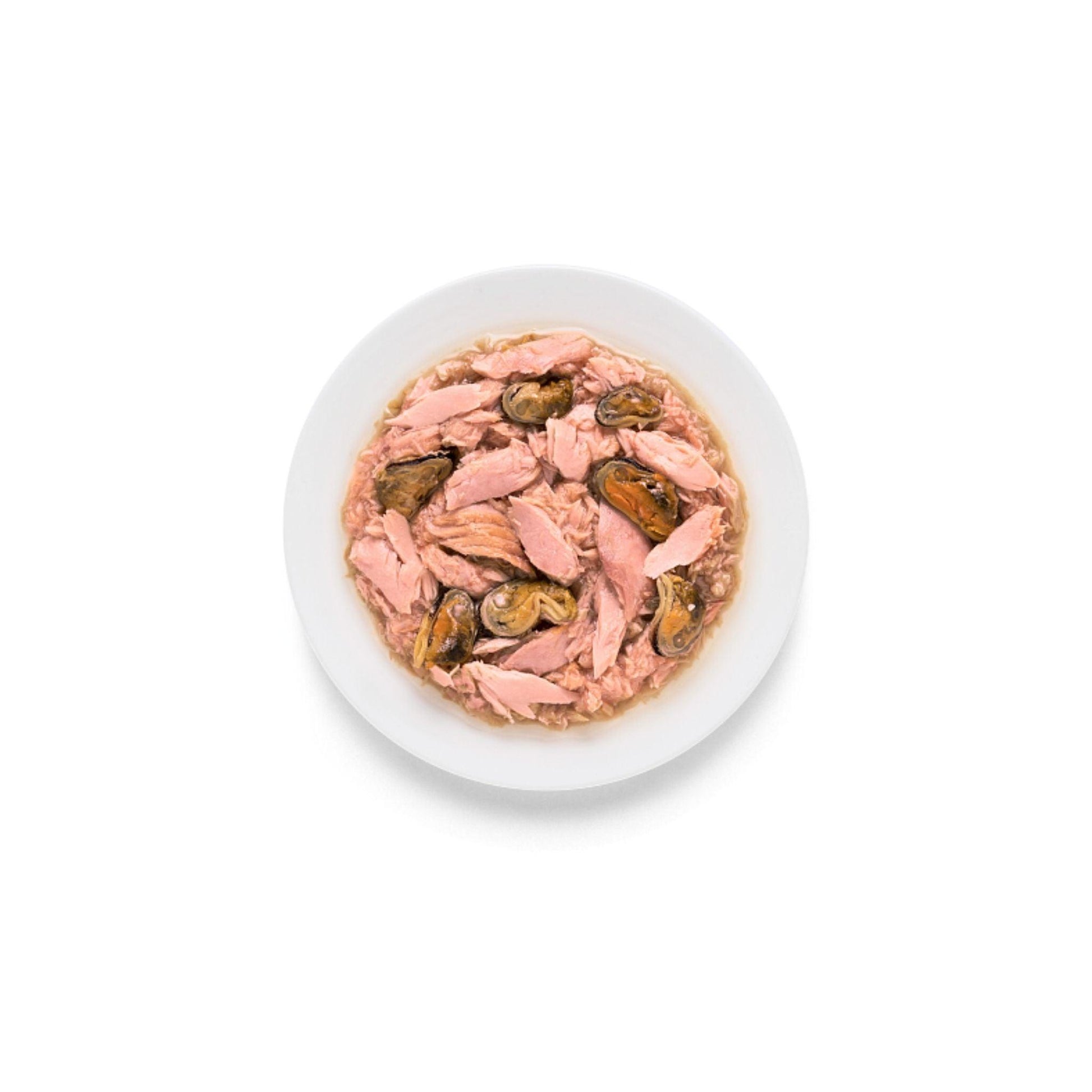 מעדן פילה טונה ומולים שימורי מזון מלא 75% בשר לחתולים בוגרים. מזון רטוב לחתולים היפואלרגניים, תזונה טבעית ובריאה ללא דגנים וגלוטן, ולכן המעדן מועשר בויטמינים. מתאים לחתולים עם בעיות במערכת העיכול