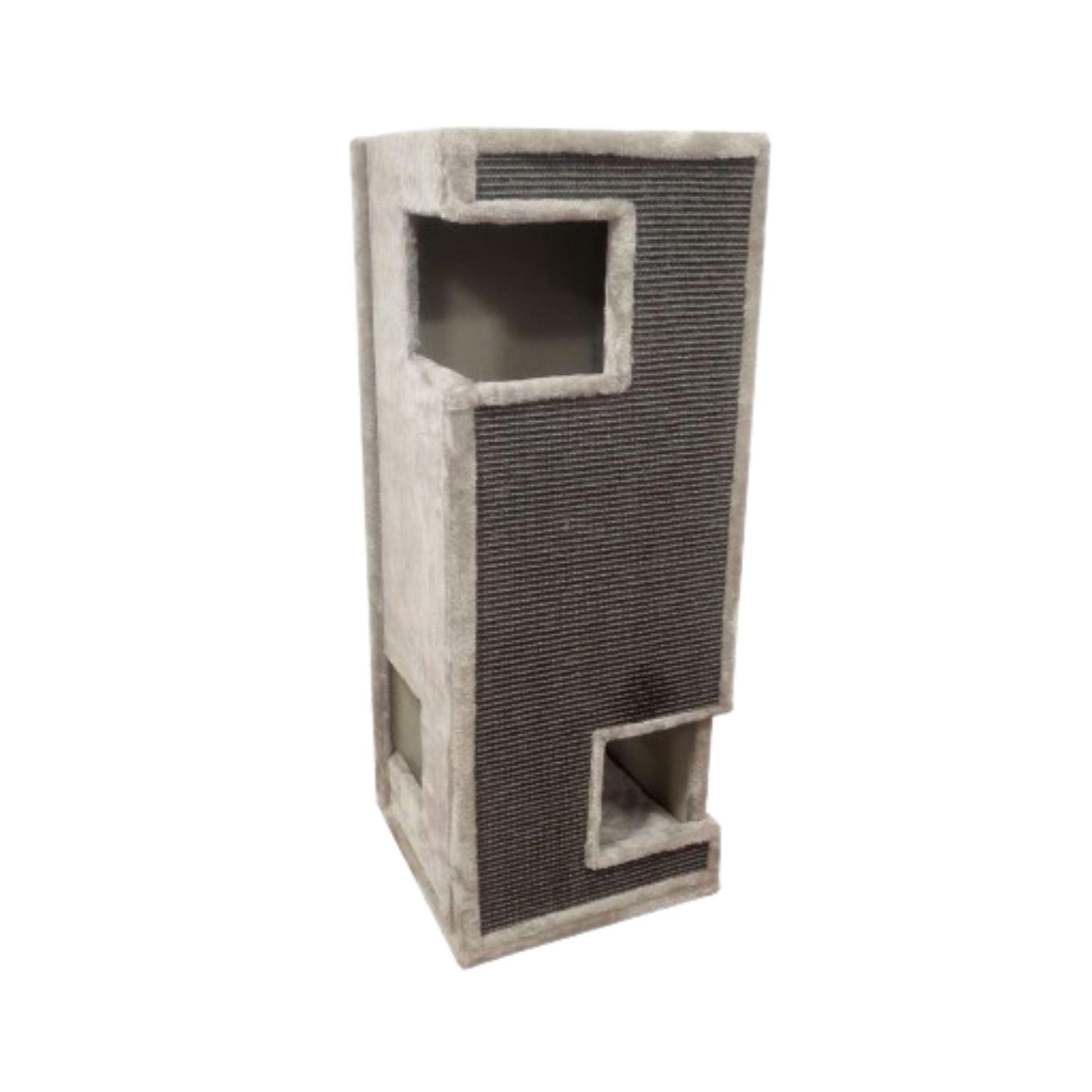 מגרדת לחתולים עם עיצוב מודרני הכוללת מספר מחילות סגורות, קירות גירוד סיזל ושטח מחבוא למשחק ומנוחה. פתרון מושלם לחתולים שאוהבים לשחק, לטפס ולגרד
