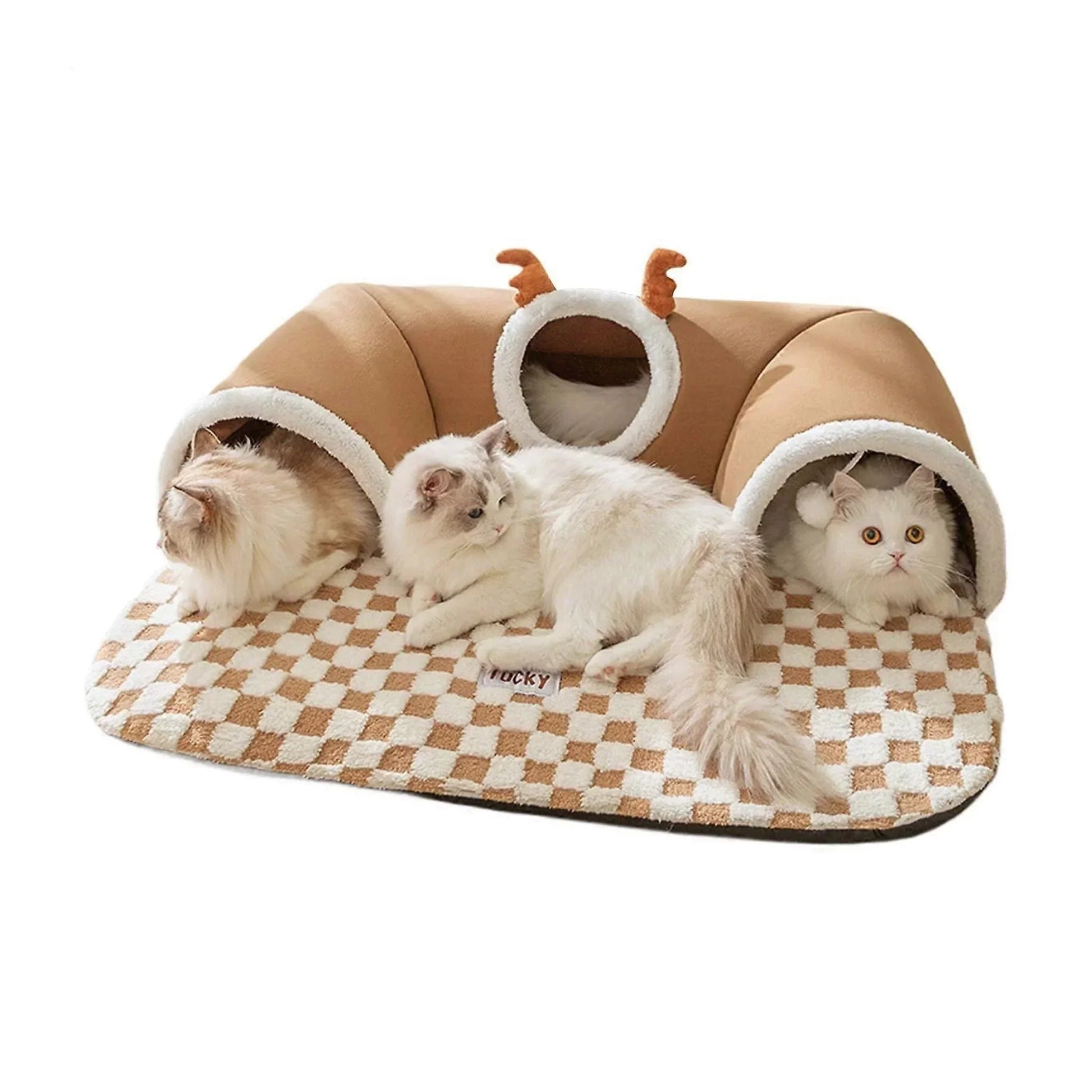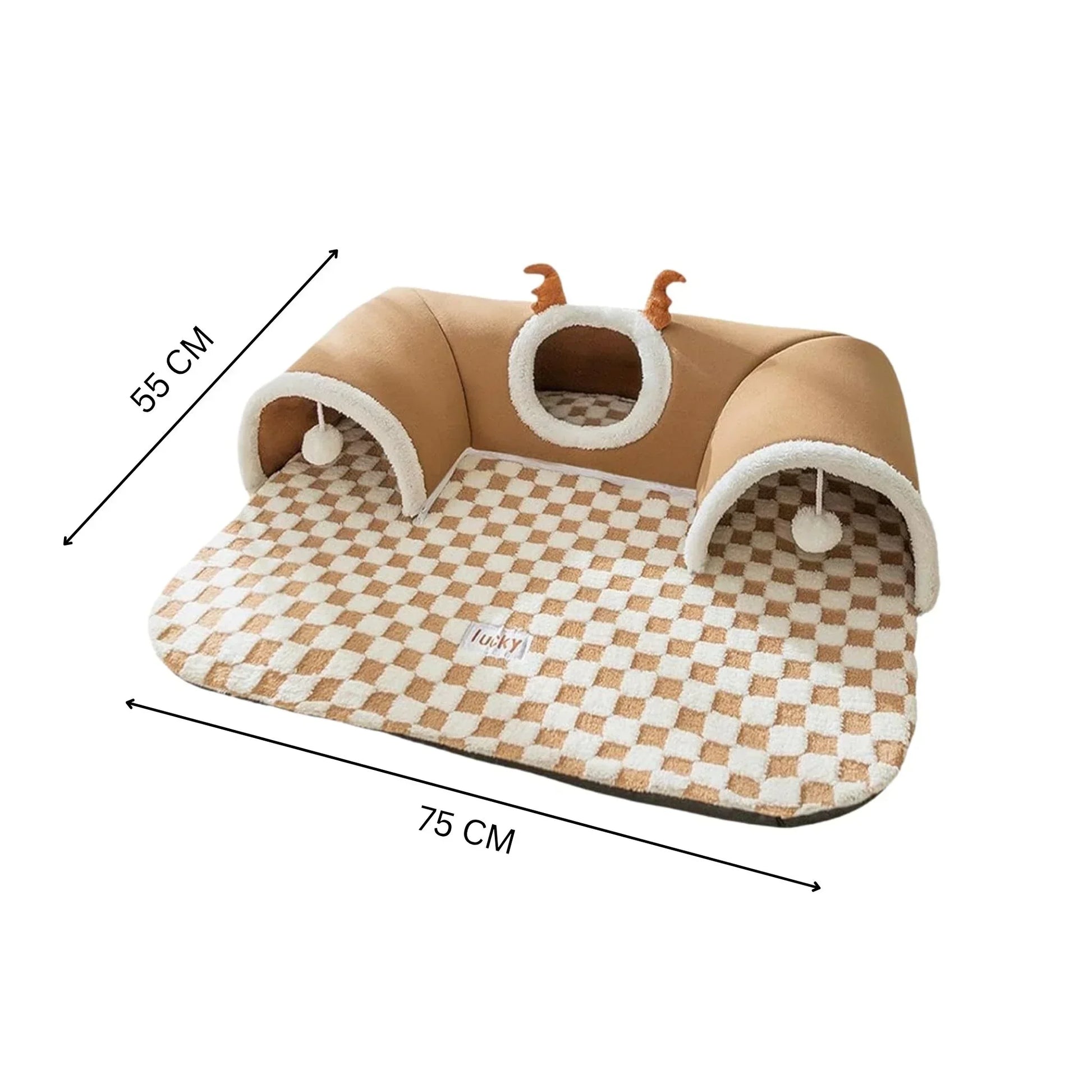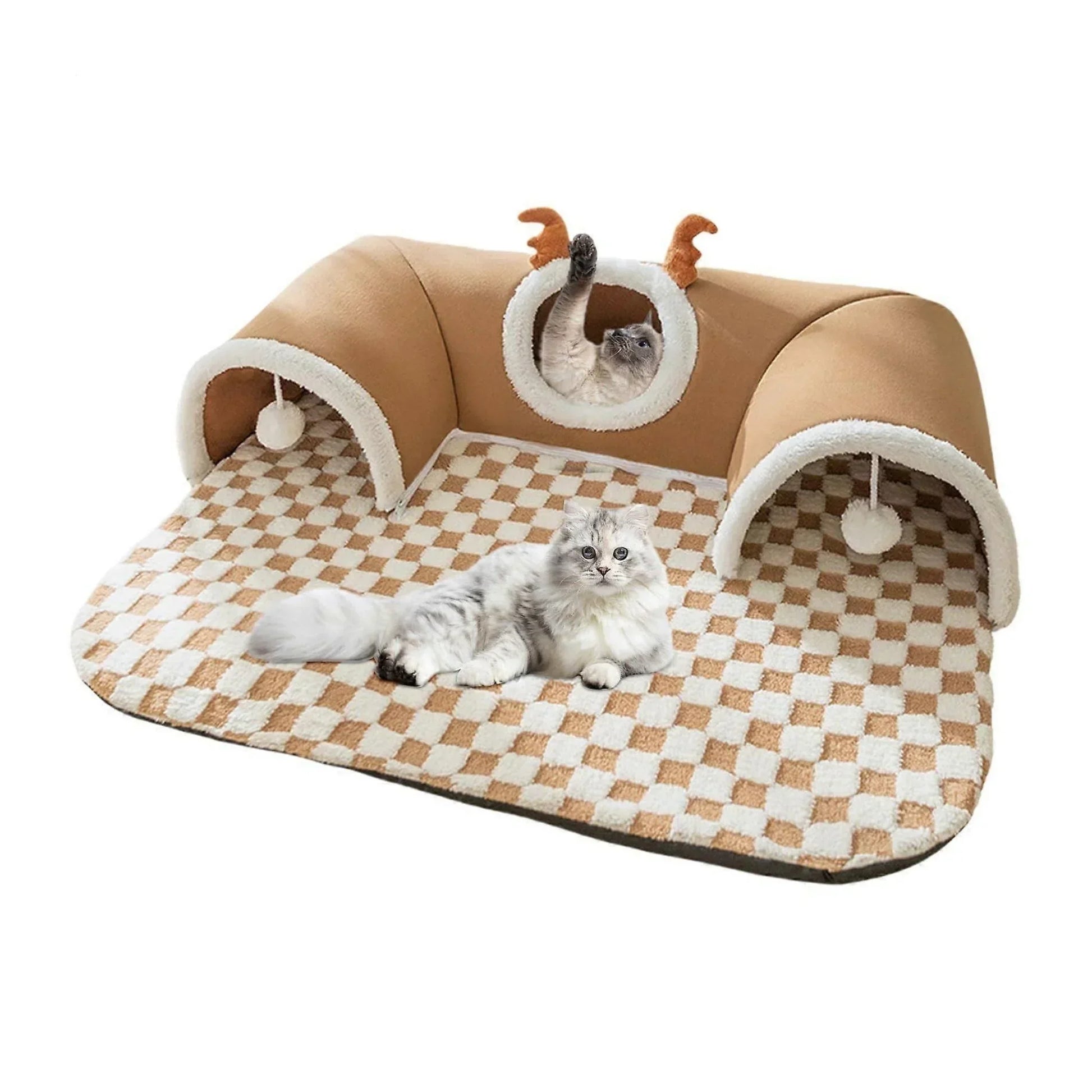 מיטת המשחק הזו משלבת בין מזרן רך ונעים לבין שתי מנהרות מרופדות המעניקות לחתול מקום מסתור ובילוי אינסופי.