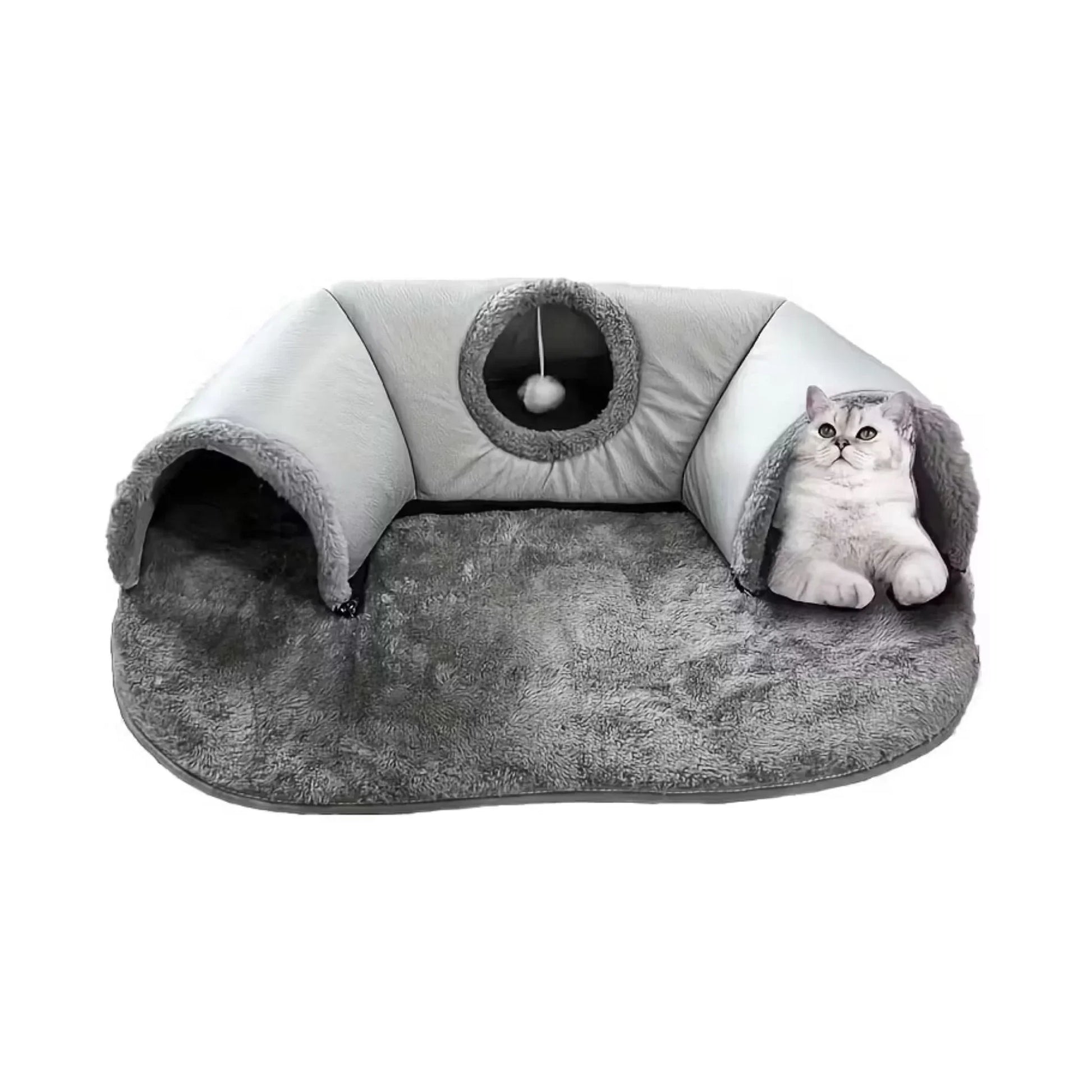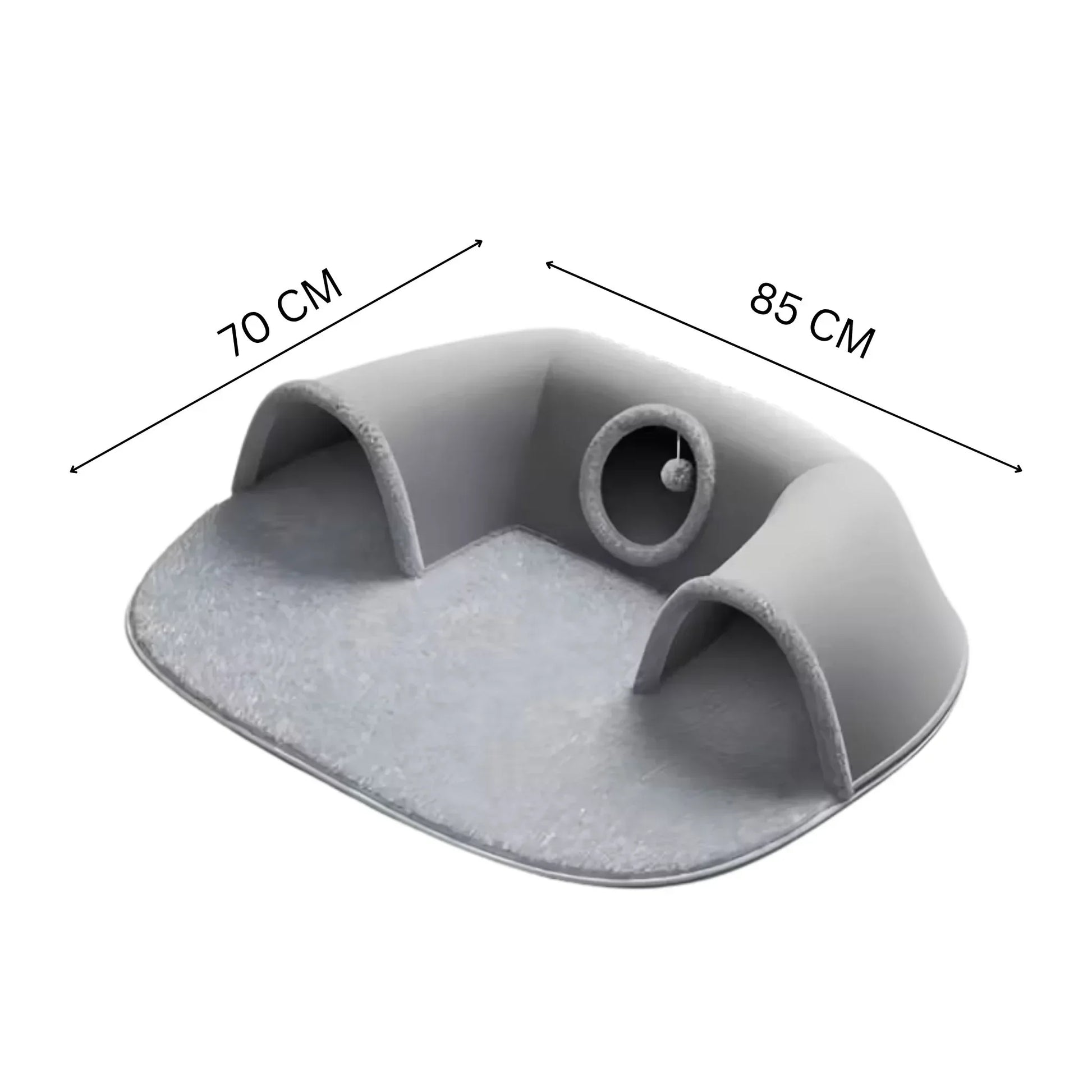 מיטת המשחק הזו משלבת בין מזרן נעים לבין שתי מנהרות מרופדות המעניקות לחתול מקום מסתור ובילוי אינסופי.