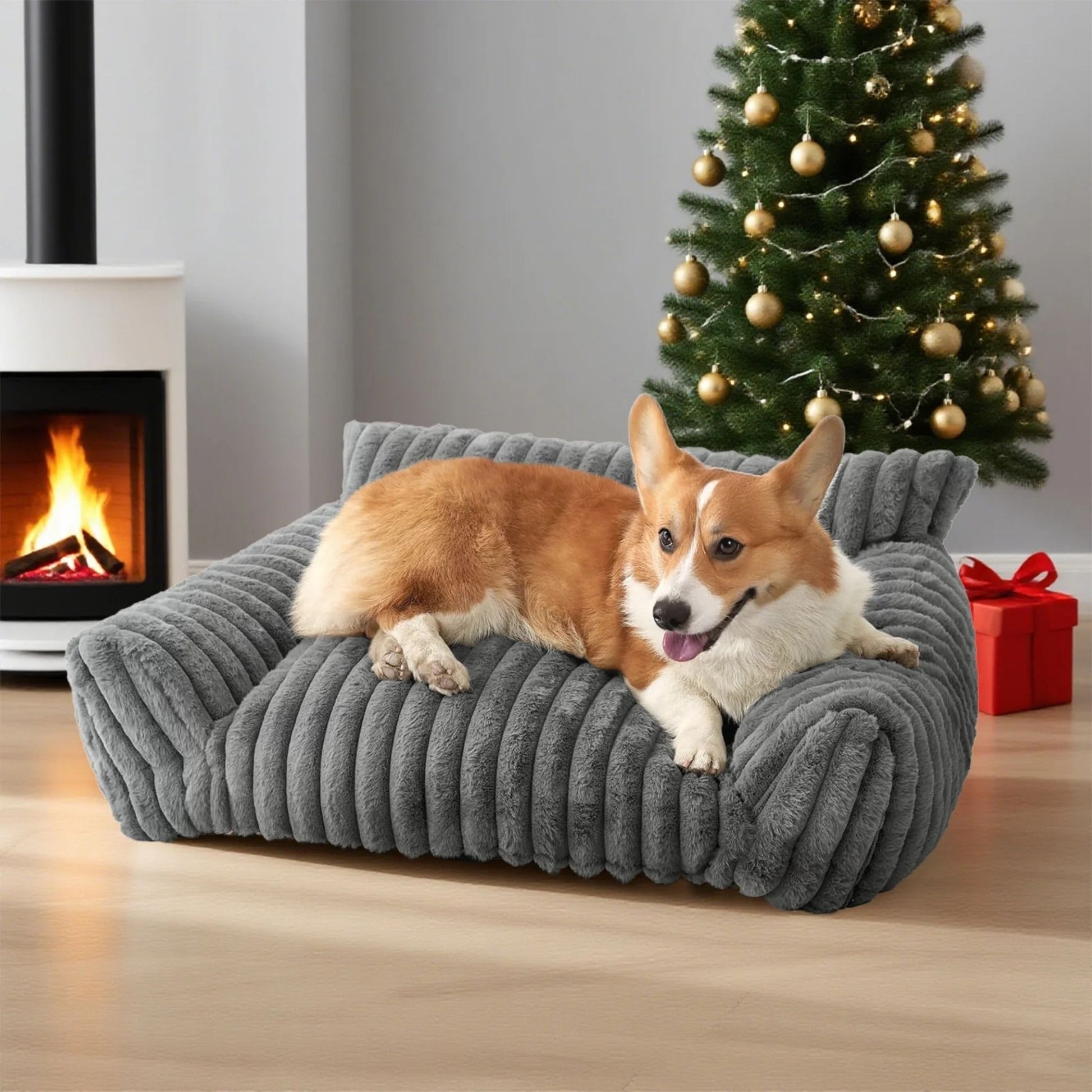 Hoofie מיטה לכלבים וחתולים בסגנון ספה צבע אפור