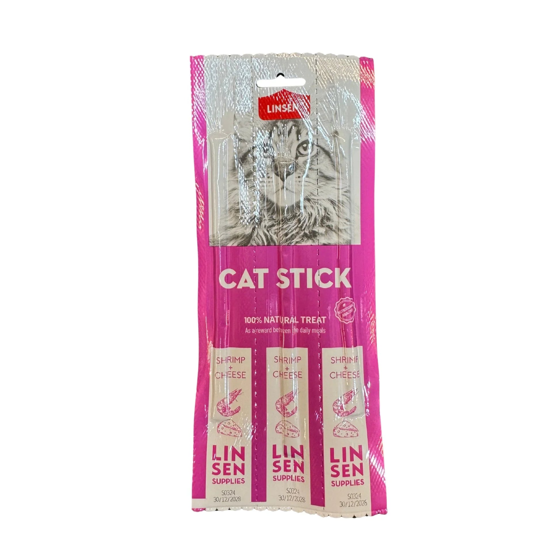 LINSEN חטיף סטיקס יבש לחתולים בטעם שרימפס וגבינה 3 מקלות