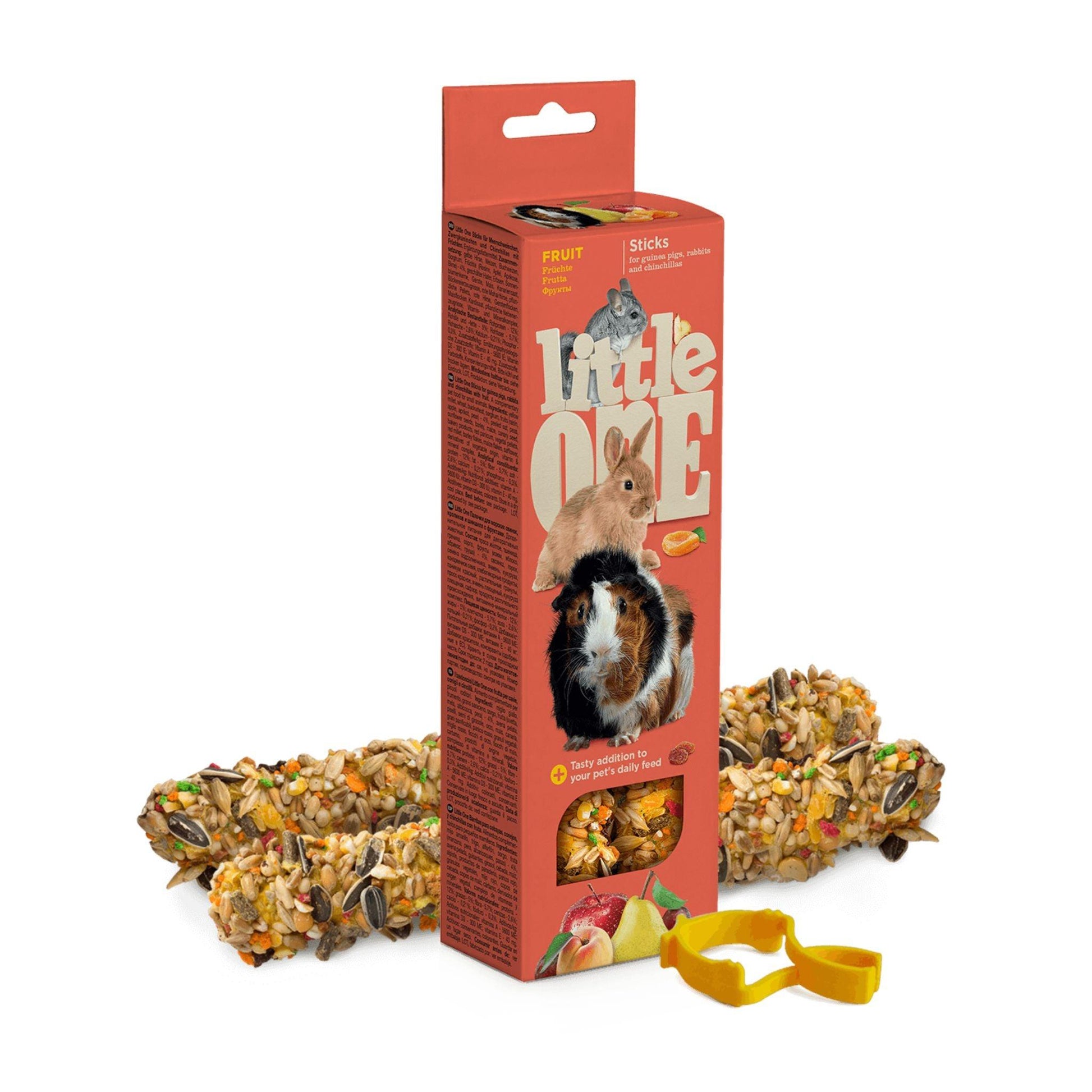 ליטל וואן מקלות פירות הם חטיף טבעי ומזין המיועד לשרקנים, ארנבים וצ’ינצ’ילות, המספק חוויית לעיסה מהנה ומסייע בטיפוח השיניים. המקלות עשויים מתערובת דגנים מובחרת בשילוב פירות טבעיים כמו צימוקים, תפוחים, משמשים ואגסים, התורמים לבריאות ולטעימות גבוהה.
