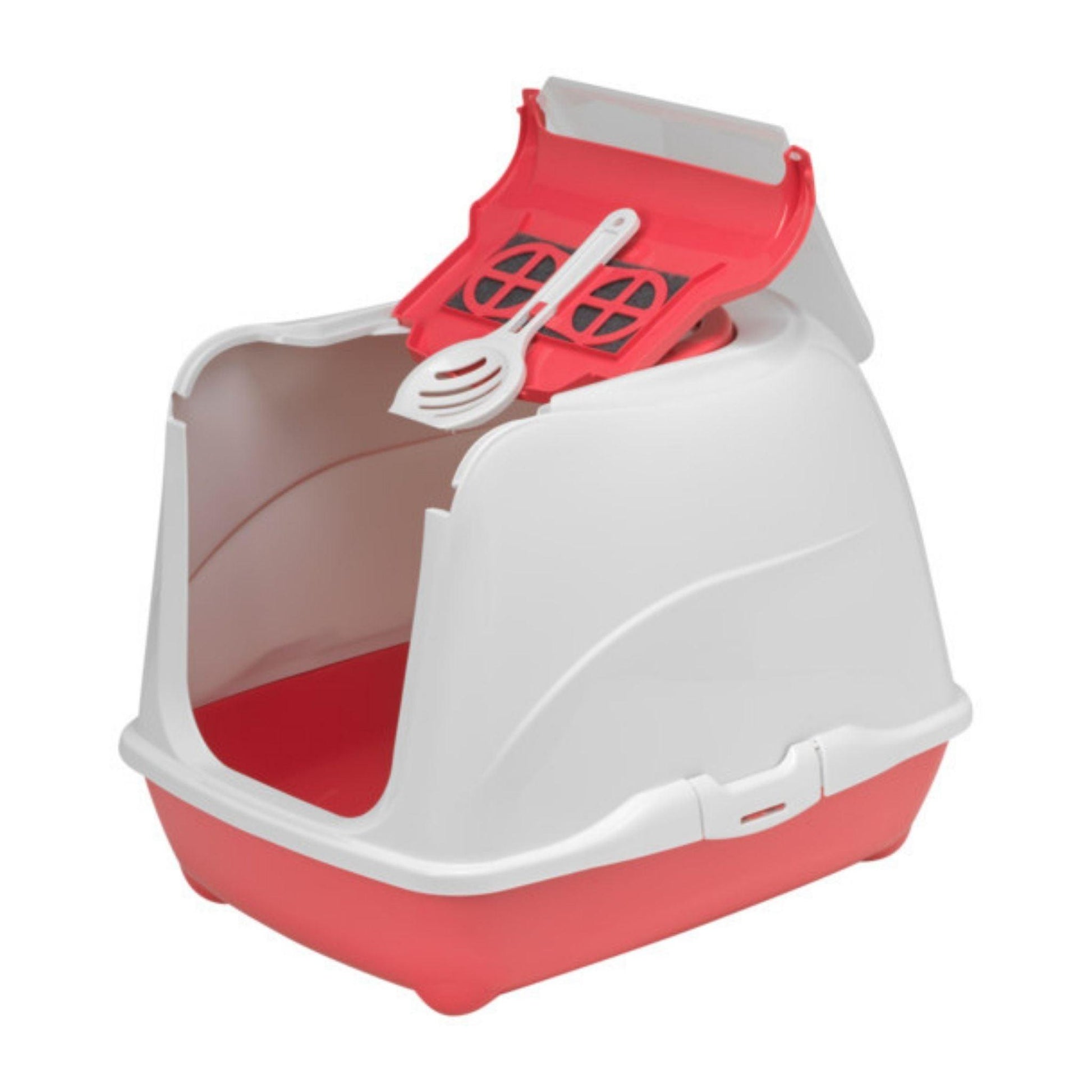 שירותים סגורים ומרווחים במיוחד לחתולים גדולים בצבע אדום, דגם Flip Cat Jumbo מבית MODERNA – פליף קט ג'אמבו - אידיאליים לחתולים שאוהבים מרחב ופרטיות. כוללים פתח קדמי גדול ונוח לפתיחה, לניקוי קל ונגיש במיוחד.