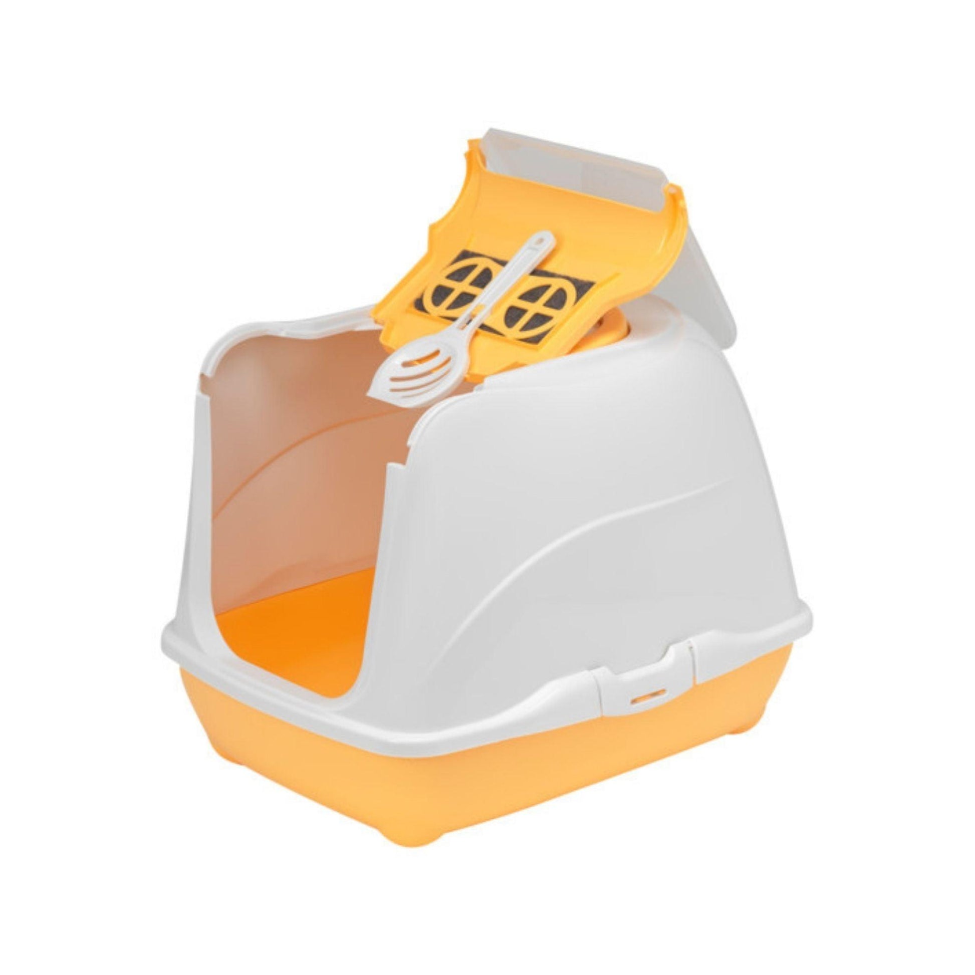 שירותים סגורים לחתול מדגם Flip Cat בגודל L מבית מודרנה הבלגית צבע כתום – פתרון פרקטי, מעוצב ונוח לשמירה על היגיינת החתול והבית. השירותים כוללים פתח עליון מתרומם לניקוי מהיר ויעיל, פילטר פחם לספיגת ריחות וכף לניקוי נוח. מבנה פלסטיק איכותי ועמיד, קל לניקוי וידידותי לבעלי חיים.
