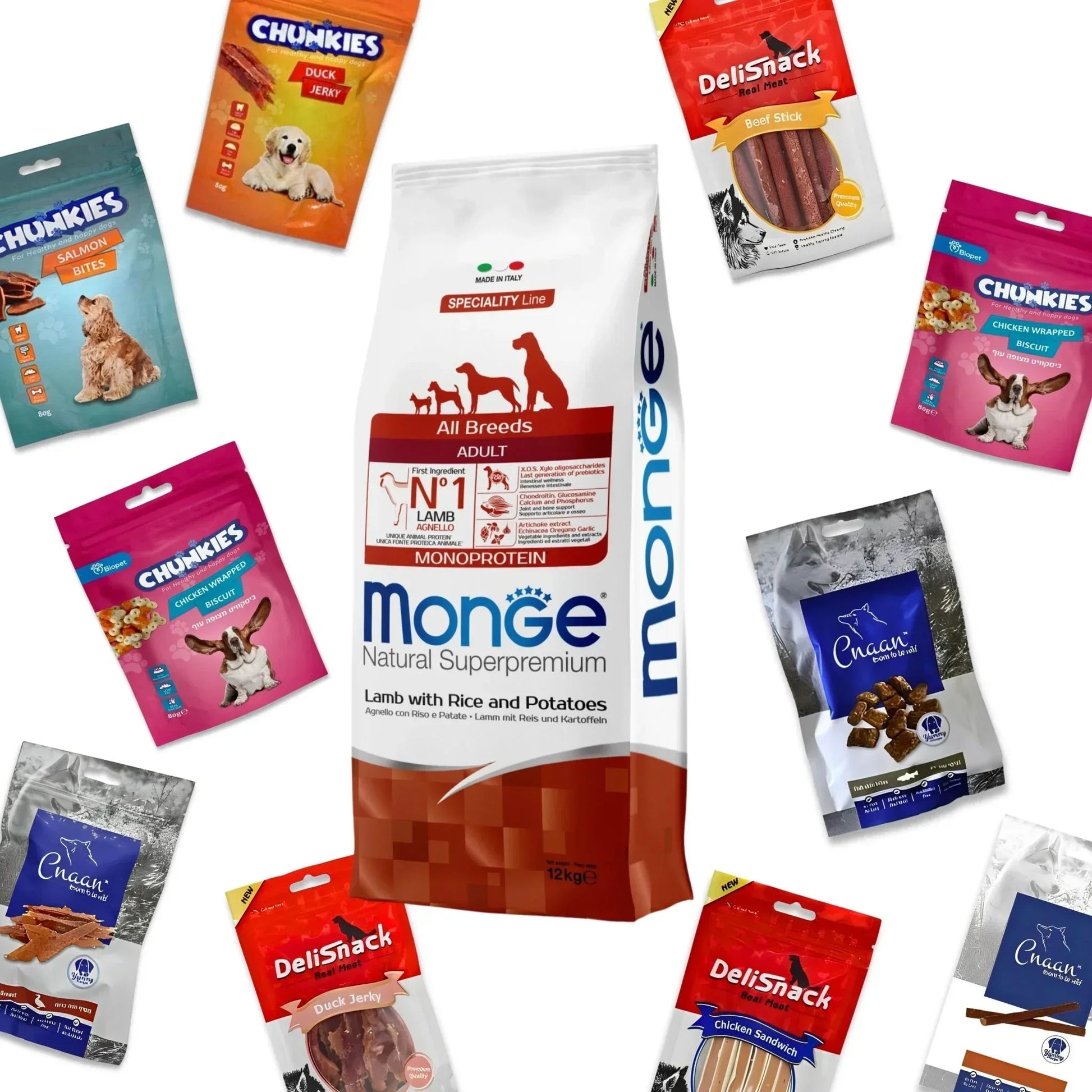 MONGE מונג’ כבש לכלב בוגר 12 ק”ג + 12 חטיפים מתנה