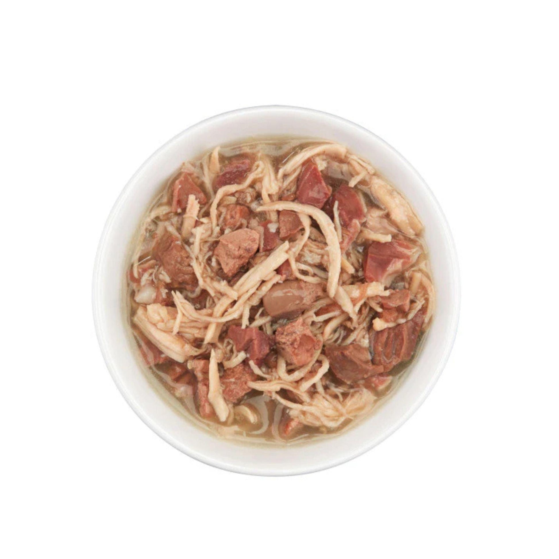 המתכון כולל חתיכות אמיתיות של עוף עם איברים פנימיים מזינים כמו קורקבנים, כבד ולבבות, בתוספת בשר בקר איכותי. יחד, הם יוצרים מזון רטוב טעים, קל לעיכול, ועשיר בלחות שתורמת לבריאות מערכת השתן.