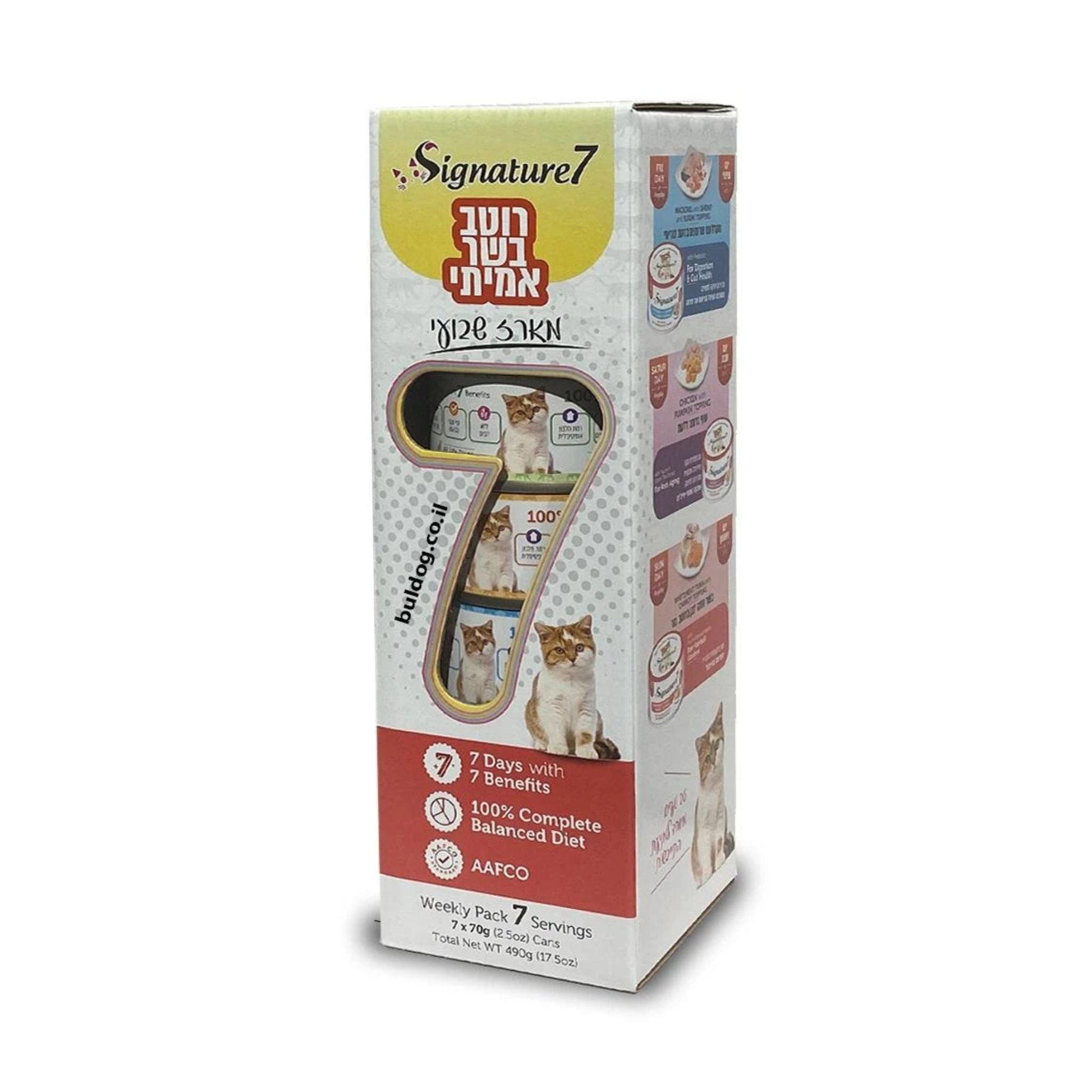 Signature7 מעדן לחתול סיגנצ’ר 7 מארז שבועי 7 טעמים עם רוטב בשר לחתולים 490 גרם