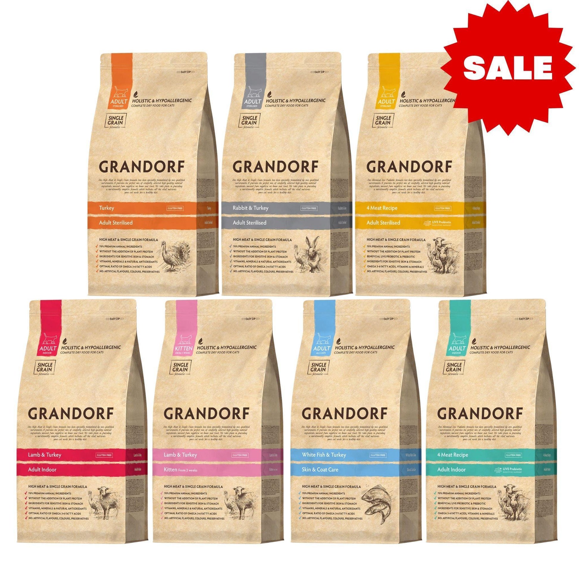 Grandorf Гипоаллергенный корм грандорф для кошек 5 пакетов по 400 г всего за 165 ₪ - Полноценный сухой корм 70% мяса для кошек от Grandorf