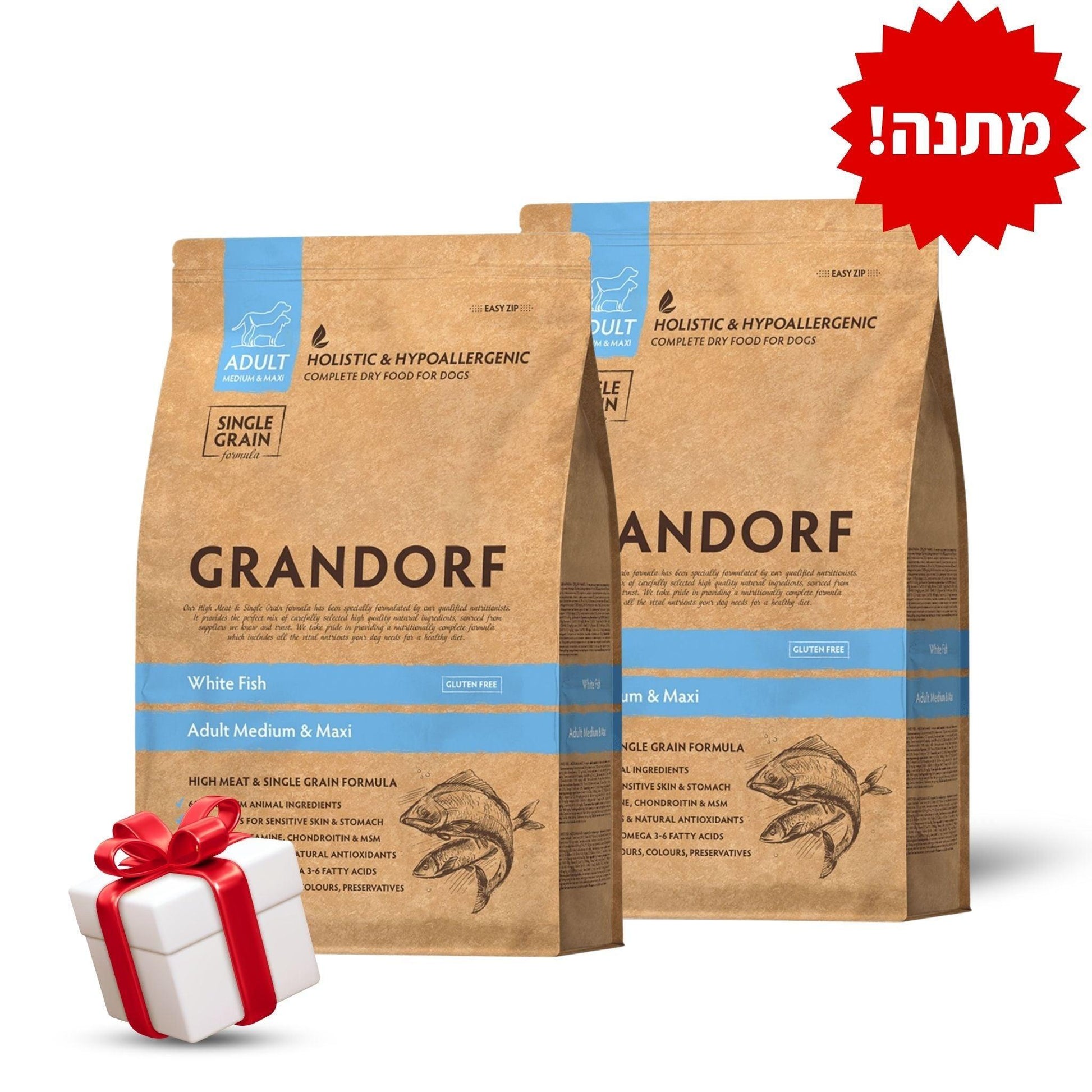 GRANDORF White Fish Turkey Грандорф Белая рыба для взрослых собак Гипоаллергенный 10 кг Полнорационный сухой корм 65% мяса для взрослых собак средних и крупных пород с нормальной активностью, чувствительной кожей и шерстью или склонных к аллергии